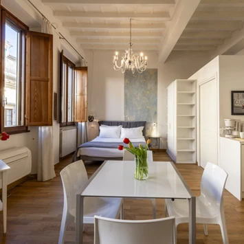 Delux è un monolocale moderno e accogliente, ideale per 2 persone. L’arredo è essenziale ma raffinato, pensato per garantire il massimo comfort. È perfetto per chi cerca una base elegante per esplorare Firenze in libertà.